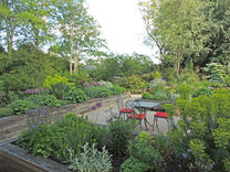 The result was a harmonious and interesting garden with raised borders at a comfortable level to work in whilst sitting. The planting design provided a sense of seclusion and privacy for the client, while simultaneously fitting naturally into the larger garden.